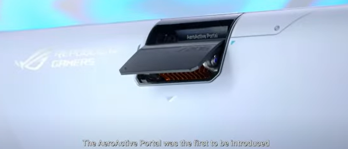 Điểm nổi bật trên ROG Phone 7 Ultimate đến từ phía bên trái mặt lưng. Thiết kế một khe tản nhiệt lớn có thể đóng-mở thông qua phần mềm. Điểm mạnh của khe này là nó có thể kết nối với quạt tản nhiệt, từ đó hấp thụ toàn bộ nhiệt năng toả ra khi chơi game và làm mát thiết bị. Thiết kế lộ thiên này cũng giúp người dùng dễ dàng lau dọn, vệ sinh quạt so với thế hệ trước khi làm bên trong thân máy.