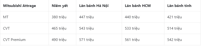 Giá xe Mitsubishi Attrage niêm yết & lăn bánh tháng 8/2023