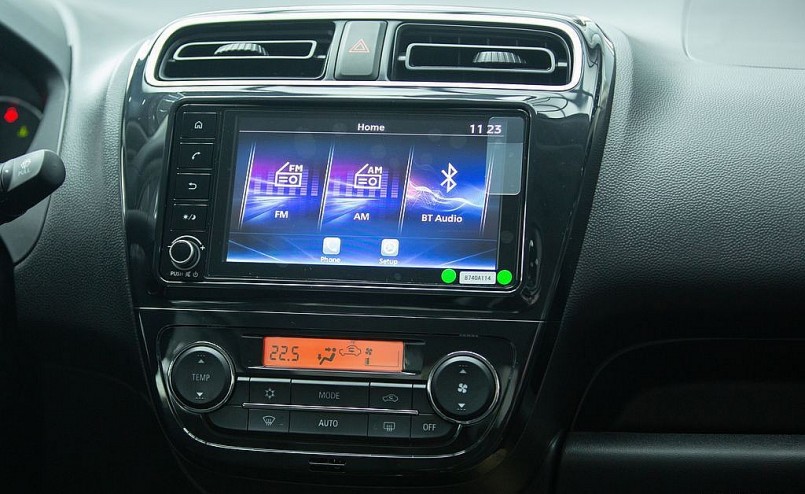 Về hệ thống giải trí, Mitsubishi Attrage 2023 số tự động được trang bị màn hình trung tâm cảm ứng 7inch đi cùng âm thanh 4 loa. Còn bản số sàn chỉ dùng màn hình tiêu chuẩn nhỏ, kèm 2 loa. Bản số tự động được trang bị thêm cả Apple CarPlay/Android Auto. Dù đây không phải là tính năng nổi bật gì nhưng việc có mặt trên một mẫu xe 400 triệu vẫn là điều rất đáng khen.