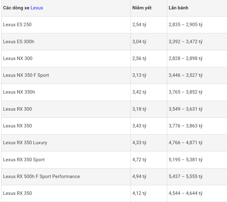 Lexus RX là mẫu xe SUV bán chạy nhất của Lexus. Đây là chiếc xe đã đóng góp không nhỏ vào quá trình phát triển và tạo nên danh tiếng cho Lexus như ngày hôm nay. Ở Việt Nam, mẫu SUV 5 chỗ Lexus RX mang đến khá nhiều tuỳ chọn động cơ như: động cơ tăng áp I4 2.0L (233 mã lực), động cơ V6 3.5L (296 mã lực), động cơ V6 3.5L (290 mã lực), động cơ hybird gồm V6 3.5L (259 mã lực) kết hợp động cơ điện…