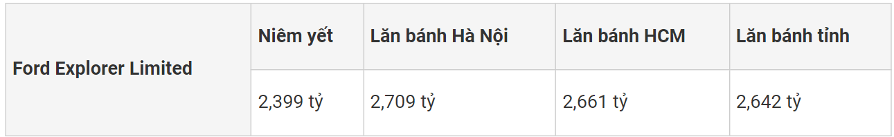 Bảng giá xe ô tô Ford Explorer