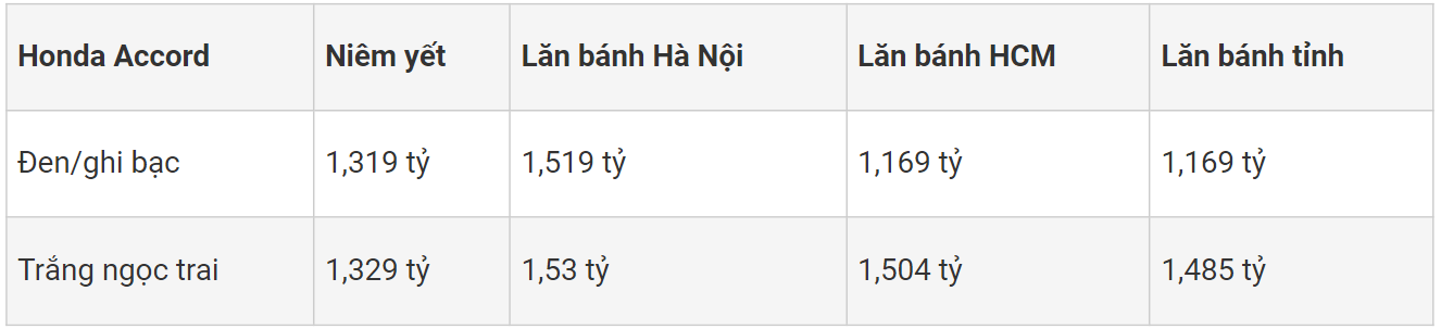 Bảng giá xe ô tô Honda Accord 2023 tháng 11/2023