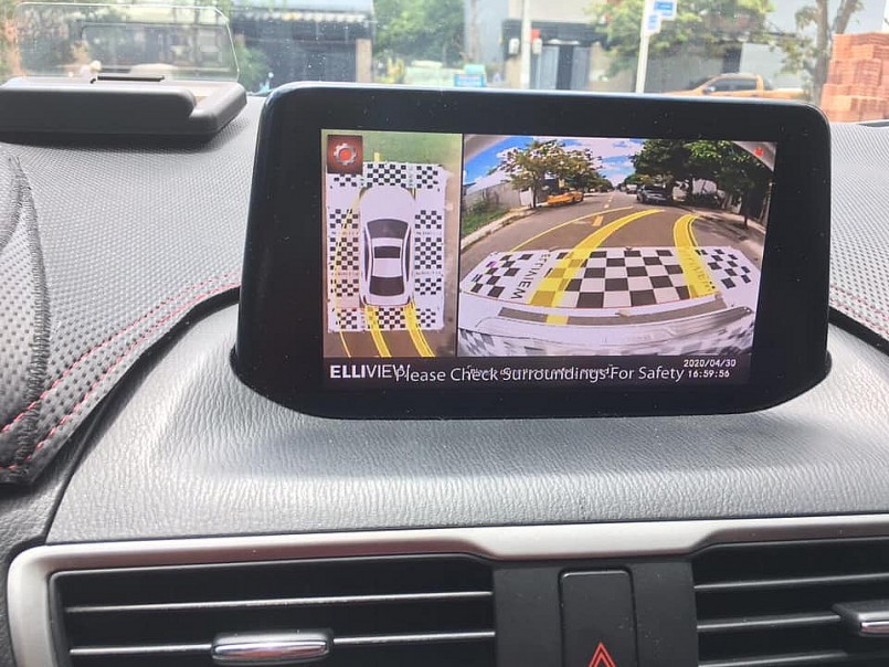 Điểm mù hai bên cũng có camera để cung cấp hình ảnh.Với camera 360 độ, người lái có thể quan sát mọi ngóc ngách, mọi khu vực xung quanh xe, không còn lo điểm mù, tầm nhìn bị che khuất.