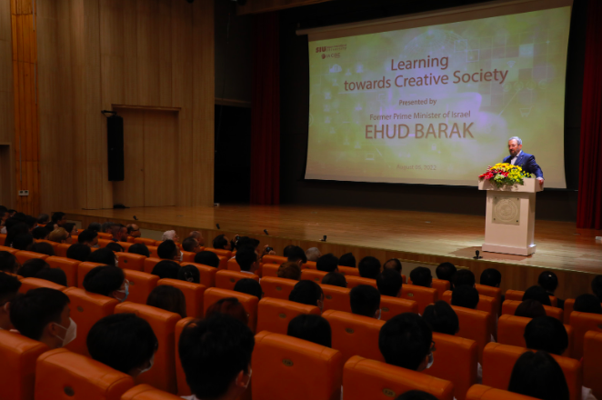 Sáng ngày 5/8/2022, trong chuyến thăm và làm việc tại Việt Nam, cựu Thủ tướng Israel Ehud Barak đã có buổi trò chuyện với thầy trò trường Đại học Quốc tế Sài Gòn – SIU (thuộc Tập đoàn Giáo dục Quốc tế Á Châu – GAIE) tại Nhà hát Diên Hồng, Đông A Campus - số 18 Tống Hữu Định, phường Thảo Điền, TP. Thủ Đức, TP.HCM với chủ đề “Học tập hướng về xã hội sáng tạo”.