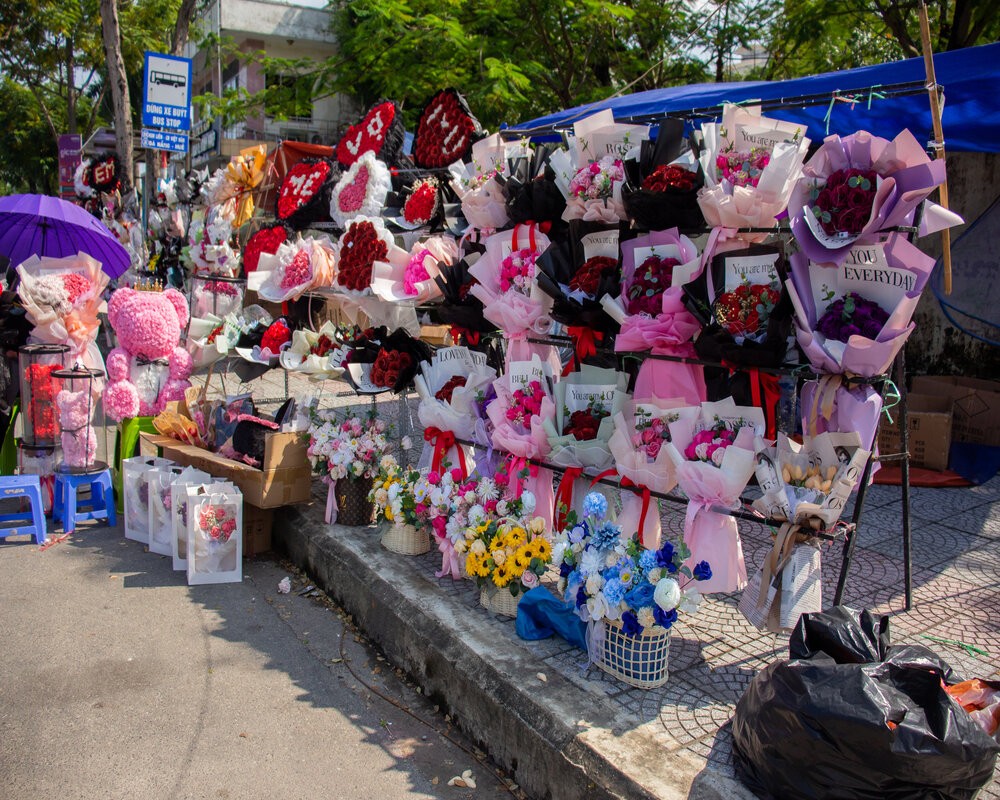 Đặc biệt, nhằm đáp ứng nhu cầu của khách hàng, nhiều nơi bày bán thêm hoa sáp và hoa len kết hợp với gấu bông, đa dạng thị trường mua bán. Trước các cổng trường Đại học trên địa bàn Đà Nẵng, rất đông gian hàng bầy bán hoa. Đối tượng khách hàng tại đây đa số là sinh viên mua tặng cô giáo, bạn bè nên mức giá thấp hơn so với các cửa hàng hoa.