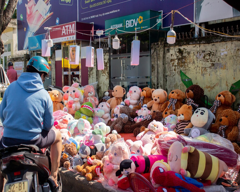 Ngoài ra, nhiều gian hàng cũng bày bán thêm gấu bông như món quà ý nghĩa trong dịp 20/10. |