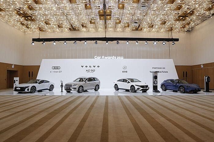 Lần đầu tiên tại Car Awards trưng bày dàn xe điện hạng sang trước công chúng, gồm: Audi e-tron GT, Volvo XC90 Recharge Ultimate, Mercedes-Benz EQS và Porsche Taycan 4S Cross Turismo.