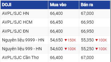 Giá vàng thương hiệu DOJI tại khu vực Hà Nội đang niêm yết ở mức 66,4 triệu đồng/lượng mua vào và 67 triệu đồng/lượng bán ra. Tại TP Hồ Chí Minh, vàng thương hiệu này đang mua vào cao hơn 50,000 đồng và bán ra thấp hơn 50.000 đồng so với khu vực Hà Nội.