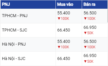Vàng PNJ đang mua vào ở mức 66,45 triệu đồng/ lượng và bán ra mức 66,95 triệu đồng/ lượng giảm 50,000 đồng ở chiều bán ra. Vàng Bảo tín Bảo Tín Minh Châu đang niêm yết ở mức 66,46 triệu đồng/ lượng mua vào và 67,03 triệu đồng/ lượng bán ra.