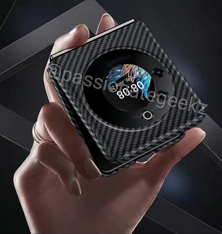 Màn hình phụ Tecno Phantom V Flip cũng sở hữu tấm nền AMOLED, kích thước 1.39 inch, độ phân giải 466x466 pixel.