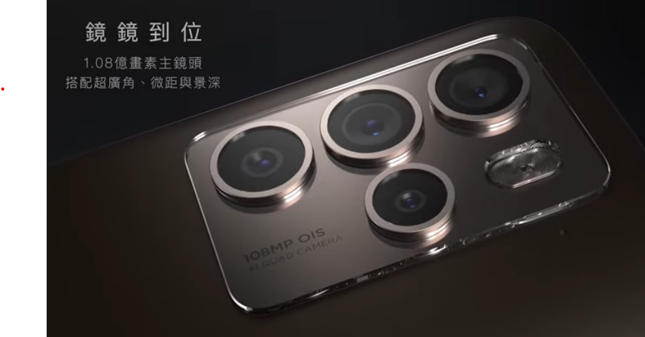 Mặt lưng của HTC U23 Pro là cụm 4 camera được sắp xếp giống dạng Samsung S23 Ultra, cảm biến chính lớn 108MP hỗ trợ quay video 4k@30fps, chống rung quang học OIS, camera góc siêu rộng 8MP, cảm biến macro 5MP, cảm biến đo chiều sâu 2MP.