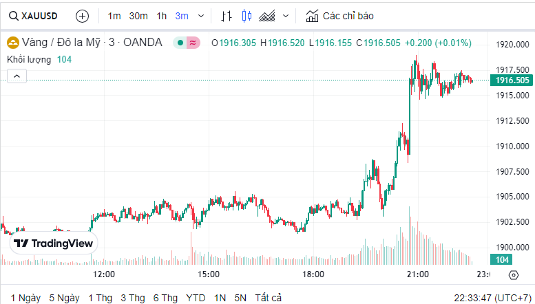 Giá vàng quốc tế (XAU) hôm nay là 1,916.44 USD (cập nhật lúc 22:32:42 23/08/2023).