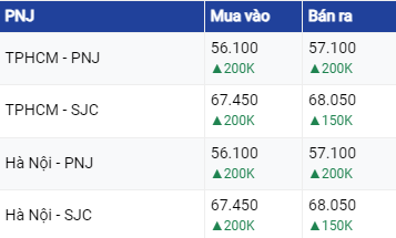 Trong khi đó, hệ thống PNJ lại điều chỉnh giá mua - bán tiếp tục tăng ở mức 200.000 đồng/lượng ở chiều mua vào và tăng 150.000 đồng/lượng ở chiều bán ra tại TP HCM.