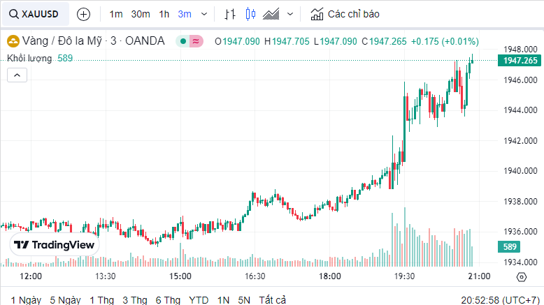 Giá vàng thế giới nhìn chung có tăng 0.54% trong 24 giờ qua, tương ứng với tăng 10.36 USD/Ounce.