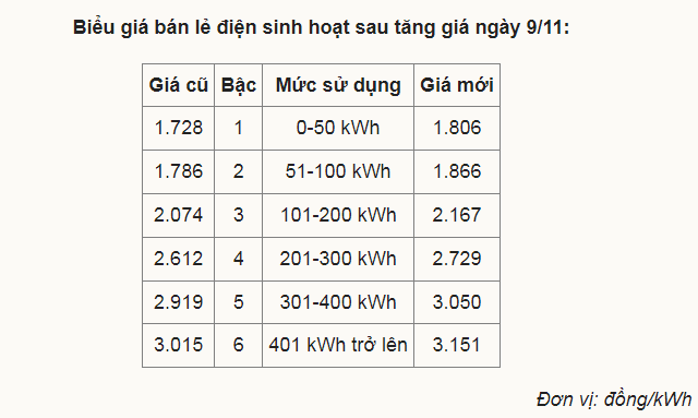 | Giá điện tăng 4,5% lên hơn 2.000 đồng/kWh từ hôm nay (9/11) |