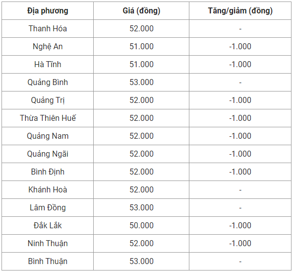 Các địa phương còn lại không ghi nhận thay đổi mới về giá.