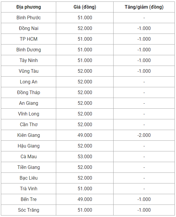 Ngoại trừ Hưng Yên vẫn neo cao ở mức 53.000 đồng/kg, các địa phương còn lại duy trì giao dịch ổn định trong khoảng 51.000 - 52.000 đồng/kg.