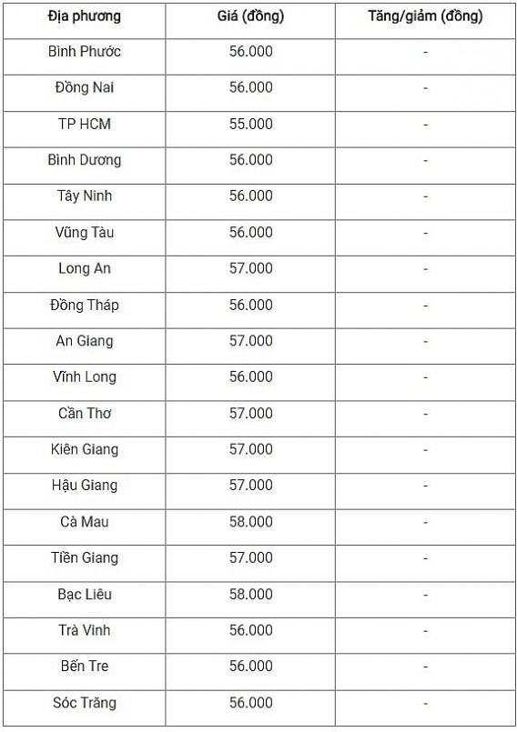 Các tỉnh thành còn lại có giá giao dịch ổn định trong khoảng 56.000 - 57.000 đồng/kg.