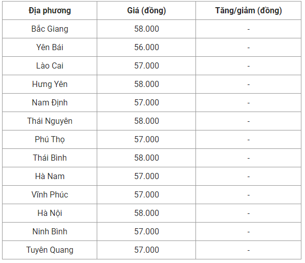 Thương lái tại các địa phương còn lại thu mua heo hơi với giá ổn định từ 57.000 đồng/kg đến 58.000 đồng/kg.