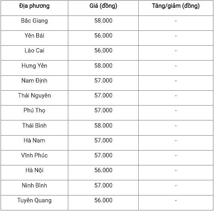 Tỉnh Thái Nguyên cũng giảm 1.000 đồng/kg xuống còn 57.000 đồng/kg.