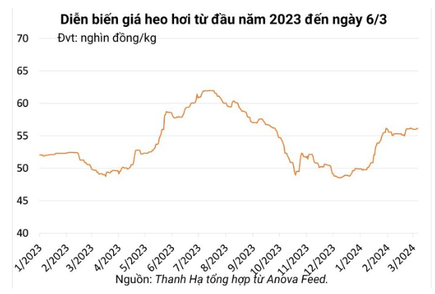 Tại miền Nam, giá heo hơi tăng nhẹ ở một vài nơi, dao động trong khoảng 56.000 - 58.000 đồng/kg.