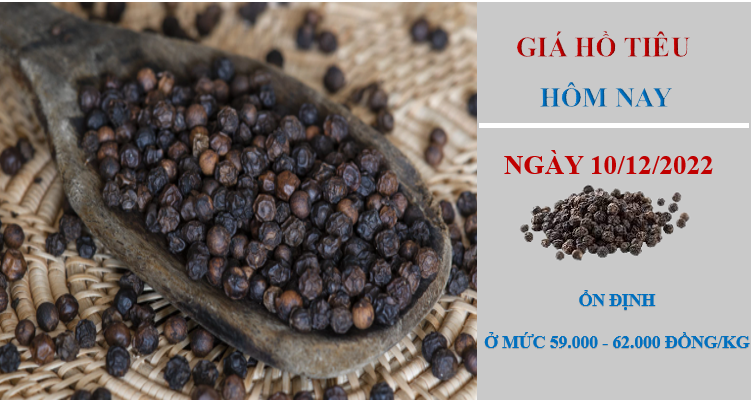 Giá hồ tiêu hôm nay 10/12/2022, thị trường trong nước không ghi nhận điều chỉnh mới tại các địa phương so với cùng thời điểm hôm qua. Hiện giá hồ tiêu đang dao động trong khoảng 59.000 - 62.000 đồng/kg.
