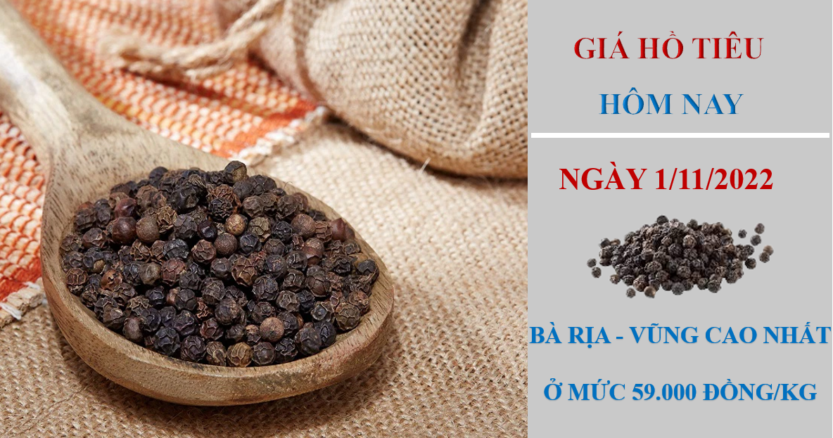 Giá hồ tiêu hôm nay 1/11/2022, thị trường trong nước không ghi nhận điều chỉnh mới tại các địa phương trong khu vực ba miền. Hiện giá hồ tiêu đang dao động trong khoảng 56.000 - 59.000 đồng/kg.