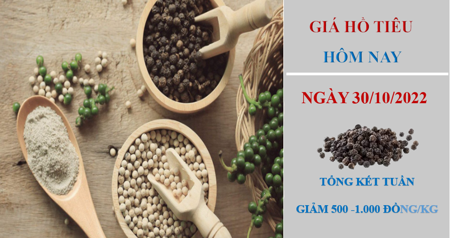 Giá hồ tiêu hôm nay 30/10/2022: Tổng kết tuần giảm từ 500 – 1.000 Đồng/kg