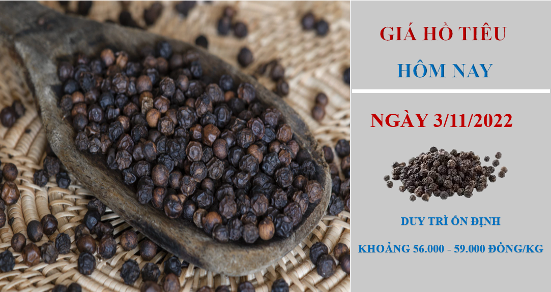Giá hồ tiêu hôm nay 3/11/2022, thị trường trong nước không có thay đổi mới tại các địa phương so với với cùng thời điểm hôm qua. Hiện giá hồ tiêu dao động trong khoảng từ 56.000 - 59.000 đồng/kg.