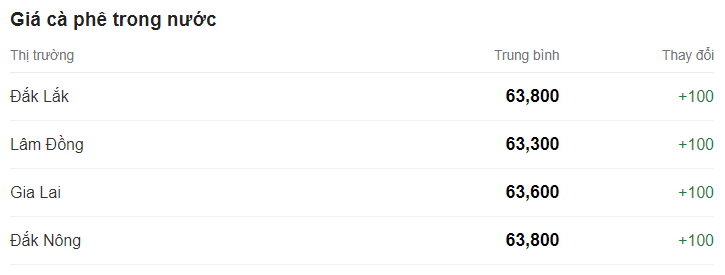 Giá cà phê hôm nay (17/10), ghi nhận tăng thêm 100 đồng/kg, hiện giao dịch trung bình ở mức 63.600 đồng/kg.