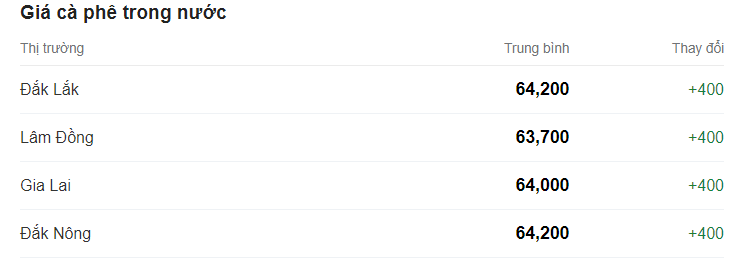 Giá cà phê hôm nay (18/10), ghi nhận tăng thêm 100 đồng/kg, hiện giao dịch trung bình ở mức 63.600 đồng/kg.