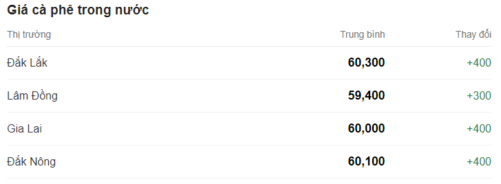 Giá cà phê cao nhất thu mua ở các vùng trọng điểm của Tây Nguyên (Đắk Lắk, Lâm Đồng, Gia Lai, Đắk Nông, Kon Tum) được ghi nhận ở mức 60.300 đồng/kg.