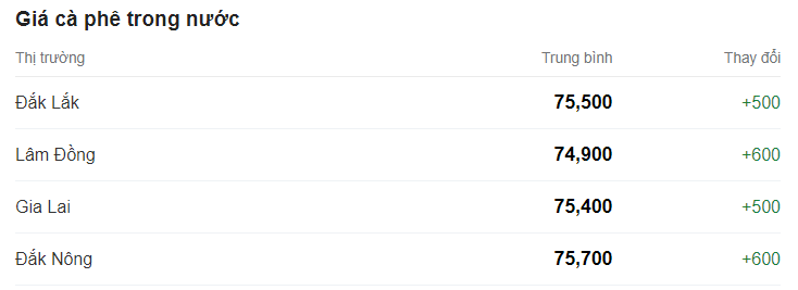 Giá cà phê hôm nay (26/1) giá cà phê trong nước tiếp đà tăng 600 đồng/kg, hiện giao dịch trung bình ở mức 75.400 đồng/kg.