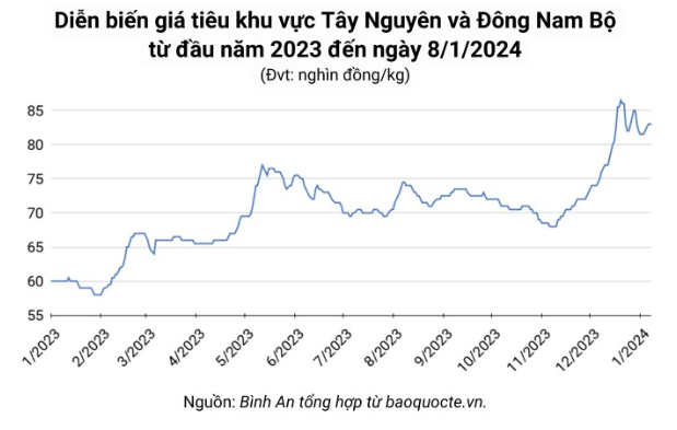 Hồ tiêu cao nhất 83.000 đồng/kg
