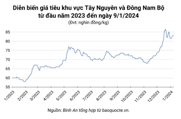 Theo báo cáo mới nhất của Cục Xuất Nhập khẩu (Bộ Công Thương), cuối năm 2023, giá hạt tiêu đen tại thị trường trong nước tăng mạnh do giới đầu cơ đẩy mạnh việc mua vào trong bối cảnh nguồn cung hạn chế.