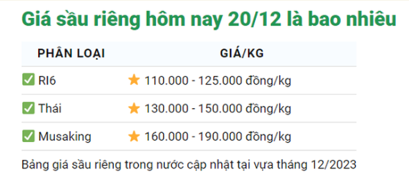 Cập nhật mới nhất giá sầu riêng hôm nay 20/12