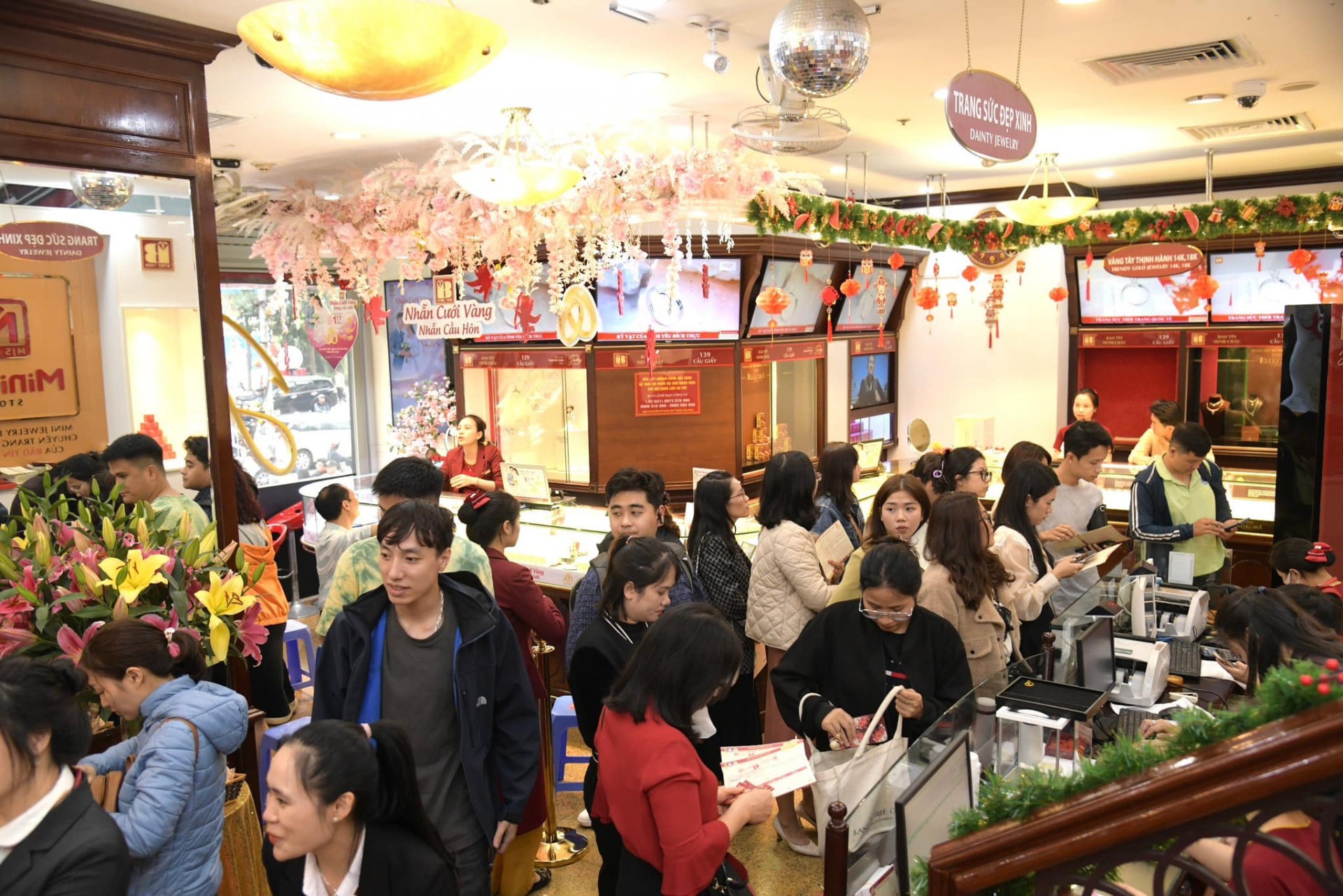Sáng nay, giá vàng miếng và nhẫn tròn trơn được các thương hiệu điều chỉnh tăng lên, nhiều người dân tiếp tục lựa chọn đến các cửa hàng kinh doanh vàng để chờ mua.