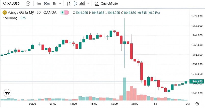 Trước đó, chốt phiên tại thị trường Mỹ đêm qua - rạng sáng nay (giờ Hà Nội), giá vàng thế giới giao ngay đứng ở mức trên 1.944 USD/ounce, giảm mạnh 15 USD/ounce so với chốt phiên trước tại thị trường này.