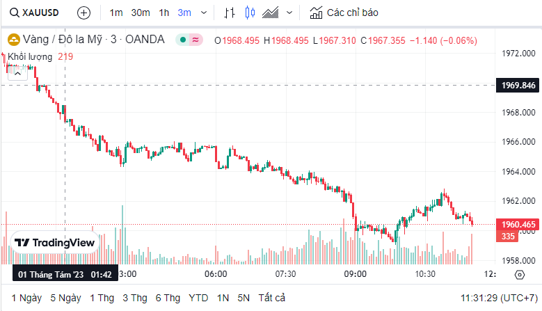 Giá vàng quốc tế (XAU) hôm nay là 1,960.81 USD (cập nhật lúc 11:30:37 01/08/2023).