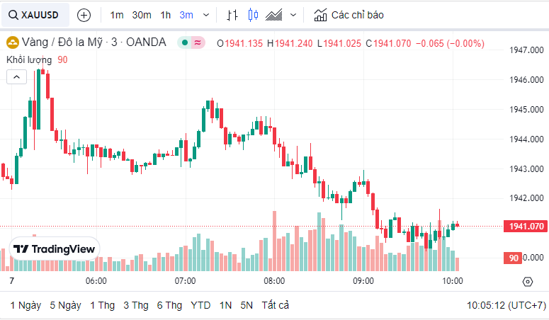 Giá vàng quốc tế (XAU) hôm nay là 1,940.99 USD (cập nhật lúc 10:01:37 07/08/2023).