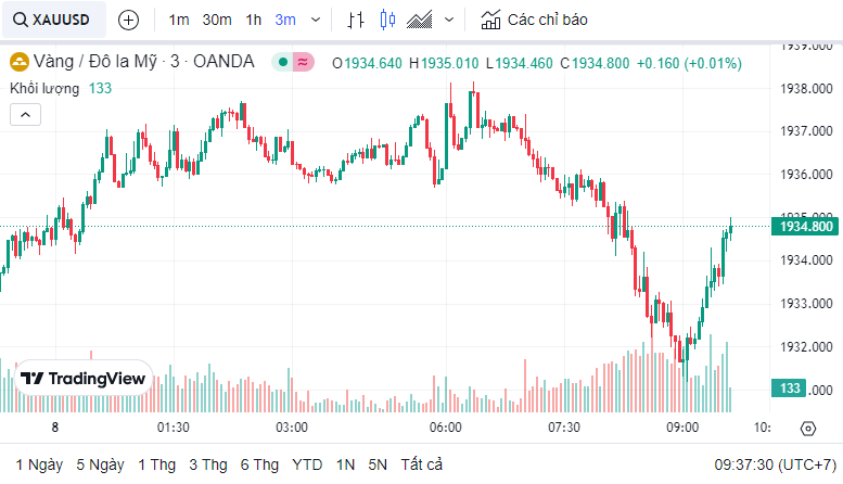 Giá vàng quốc tế (XAU) hôm nay là 1,933.94 USD (cập nhật lúc 09:35:56 08/08/2023).