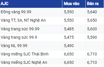 | Giá vàng AJC cập nhật 13/06/2023 lúc 10h00 |
