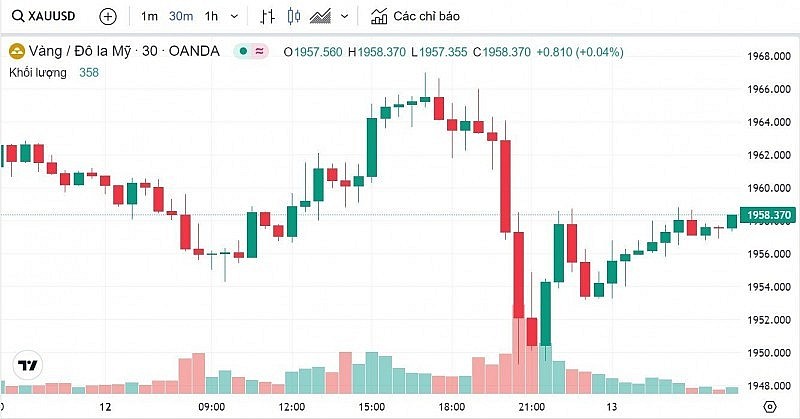 Ghi nhận vào lúc 10h00 ngày 13/6/2023 (theo giờ Hà Nội), giá vàng thế giới giao ngay tại thị trường châu Á ở quanh ngưỡng 1.958 USD/ounce, tăng nhẹ 2 USD/ounce so với giao dịch cùng thời điểm này sáng qua.