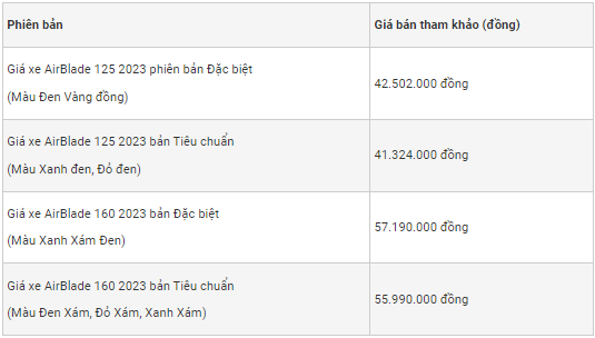 Giá xe máy Honda Air Blade 2023 giữa tháng 12/2022