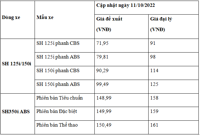 | Giá xe máy Honda SH 2022 mới nhất tháng 10/2022 Giá xe máy Honda SH 350i đầu tháng 10/2022 “nhanh tay rước em về” Cập nhật giá xe Honda SH Mode 2022 đầu tháng 10/2022 |