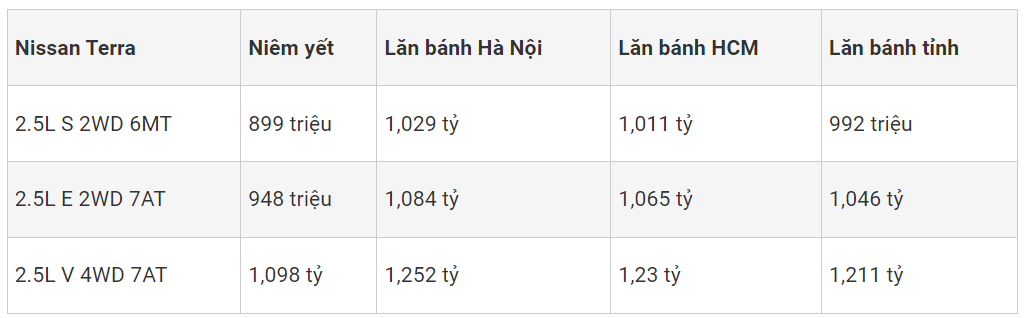 Giá Xe Nissan Terra tháng 10/2023