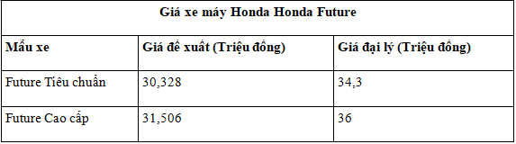 Nổi tiếng với sự bền bỉ, khả năng vận hành êm ái, tiết kiệm nhiên liệu và trở thành mẫu xe được nhiều người yêu thích. Xe máy Honda Future hiện đang được bán ra với giá chênh cao hơn giá đề xuất từ tầm 3 đến 5 triệu đồng.
