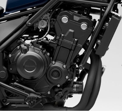 Trái tim của Rebel 500 2023 là khối động cơ DOHC 2 xi lanh song song có dung tích 471cc, 8 van, làm mát bằng chất lỏng cùng hệ thống phun xăng điện tử PGM-FI. Động cơ sản sinh công suất tối đa 33,5 kW tại vòng tua 8.500 vòng/phút và đạt mô men xoắn cực đại 43.3 Nm tại vòng tua 6.000 vòng/phút.