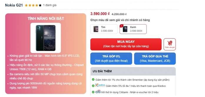 | Giá bán Nokia G21 đang được giảm mạnh, chỉ còn 3.590.000 đồng |
