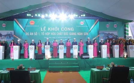 Sáng 17/2, tại Khu Kinh tế Nghi Sơn (thị xã Nghi Sơn), UBND tỉnh Thanh Hóa phối hợp với các nhà đầu tư tổ chức Lễ khởi công Dự án số 1 - Tổ hợp hóa chất Đức Giang Nghi Sơn và Nhà máy sản xuất vải Billion Union Việt Nam.